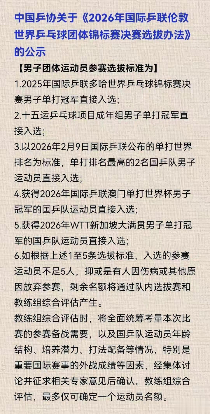 为迎回这位“战神”,乒协打破常规,量身定制世乒赛选拔规则,以制度创新扫除障碍。这一决策彰显了国乒对现实的清醒认知与破局决心。回归后的樊振东无需从资格赛打起,将直接以主力身份征战伦敦。而关于主管教练的悬念,乒协早已预留机动名额,其选择权尽在樊振东手中——师徒重聚或新锐搭档,皆指向同一目标:世乒赛冠军。