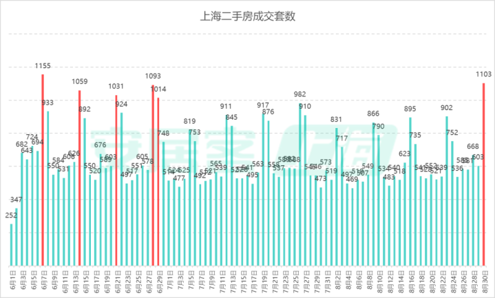 新房市场多点开花的同时,二手房市场也迎来显著回暖。据安居客上海监测的数据,8月30日,上海二手房(含商业)网签成交1103套,日成交创下自6月29日之后的新高,时隔60天成交再次破千。截至8月30日,上海8月二手房累计成交19002套。